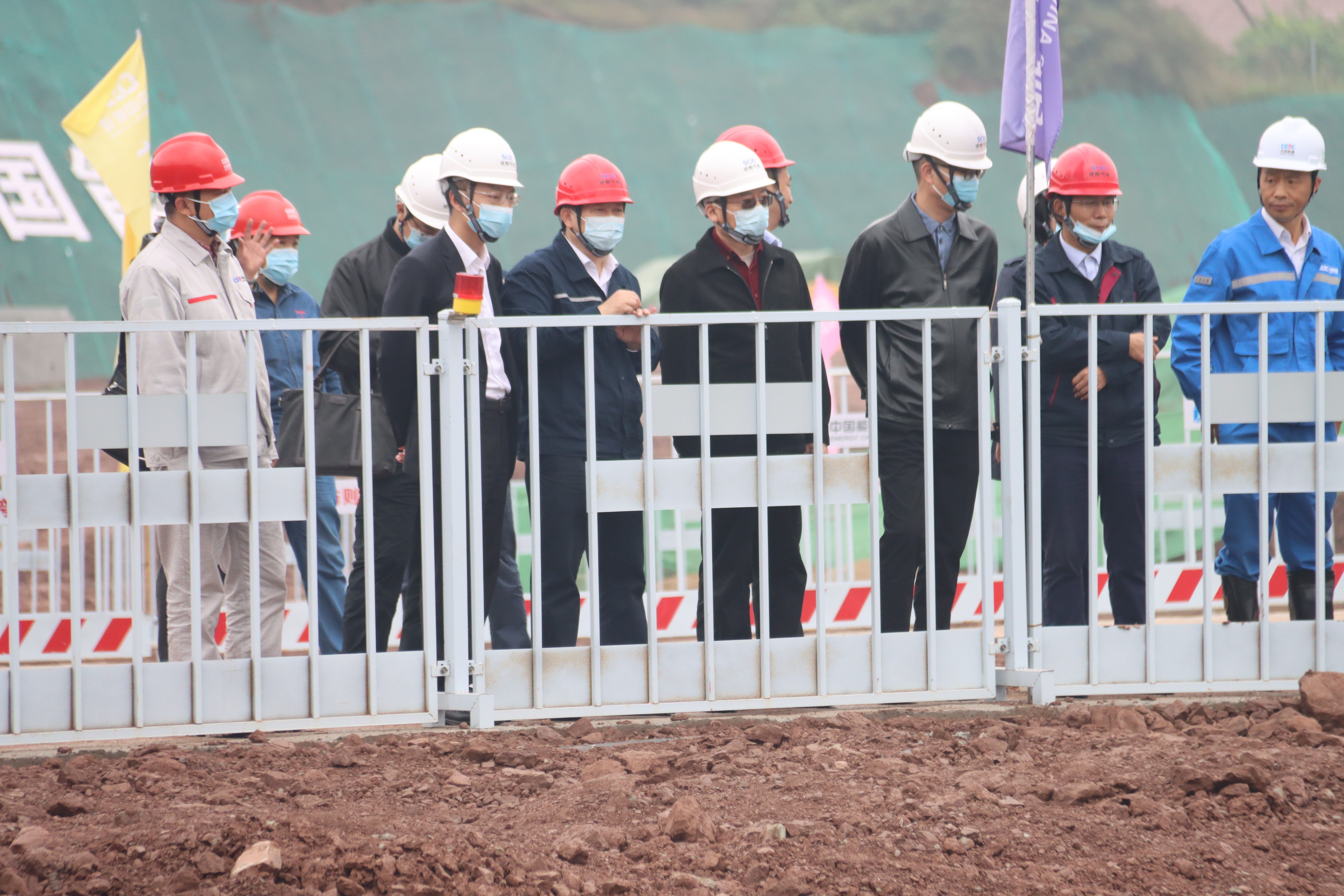 孙前元一行深入资阳燃机项目厂房基础、厂区基坑、厂区边坡等施工点位,仔细察看项目建设进度情况和现场安全管理情况,听取了资阳气电在工程建设、疫情防控、安全生产、项目投资、生产准备等方面工作情况汇报。