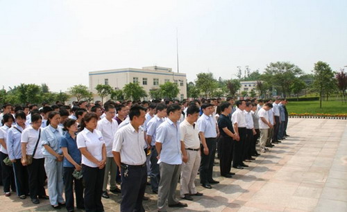 5月19日下午2点28分,四川泸州川南发电公司除当班运行人员外,所有人员集中在办公楼前,集体向“5.12”汶川地震事件中死难的人们默哀三分钟,寄以最沉痛的哀悼。
