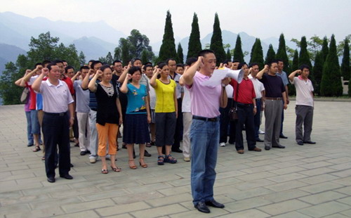 7月1日至2日,在建党87周年之际。攀枝花爱国主义教育基地┄┄攀枝花英雄纪念碑前党旗高挂,气氛庄严肃穆。川投化工党委、攀枝花火车站党总支130余名新、老党员面对鲜红的党旗,面对苍松翠柏环绕,高大挺拔的攀枝花英雄纪念碑,在领誓人的带领下举起右手庄严宣誓:“我志愿加入中国共产党,拥护党的纲领,遵守党的章程,履行党员义务,执行党的决定,严守党的纪律,保守党的秘密,对党忠诚,积极工作,为共产主义奋斗终身,随时准备为党和人民牺牲一切,永不叛党。宣誓人,……”。
