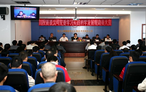 10月16日上午,川投峨铁公司党委在办公大楼10楼会议室召开了学习实践科学发展观动员会,标志着川投峨铁公司深入学习实践科学发展观活动正式全面展开。公司领导班子成员、党委委员、全体中层管理人员以及部分生产分厂、辅助单位、职能部门党小组长共计121人参加了动员大会。