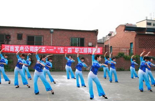 为迎接“五•一”国际劳动节和“五•四”青年节以及建党90周年,推进“创先争优”活动的深入开展。4月27日,川南发电公司在生活区篮球场举办了庆祝“五•一”国际劳动节和“五•四”青年节职工排舞表演,共有五个分工会六只代表队参加了表演。公司总经理李胜章、党委书记唐得旗等公司领导以及前来公司检查指导工作的beat365正版唯一官网安办主任邱煜功、能源部经理宁祖等观看了表演。