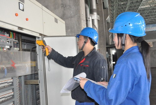 针对泸州地区夏季气温较高的特点,川南发电公司认真做好防暑度夏工作,购买了红外线测温仪等设备,组织职工随时监测设备,确保安全生产。图为该公司职工利用红外线测温仪检测设备温度情况。(姜波)