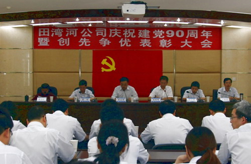 6月24日,田湾河公司党委在电站现场208会议室隆重召开庆祝建党90周年暨创先争优表彰大会。公司党委书记、总经理孙志祥,党委副书记、纪委书记刘凤鸣,公司全体党员、入党积极分子和部门副职以上管理人员参加了大会,大会由刘凤鸣主持。