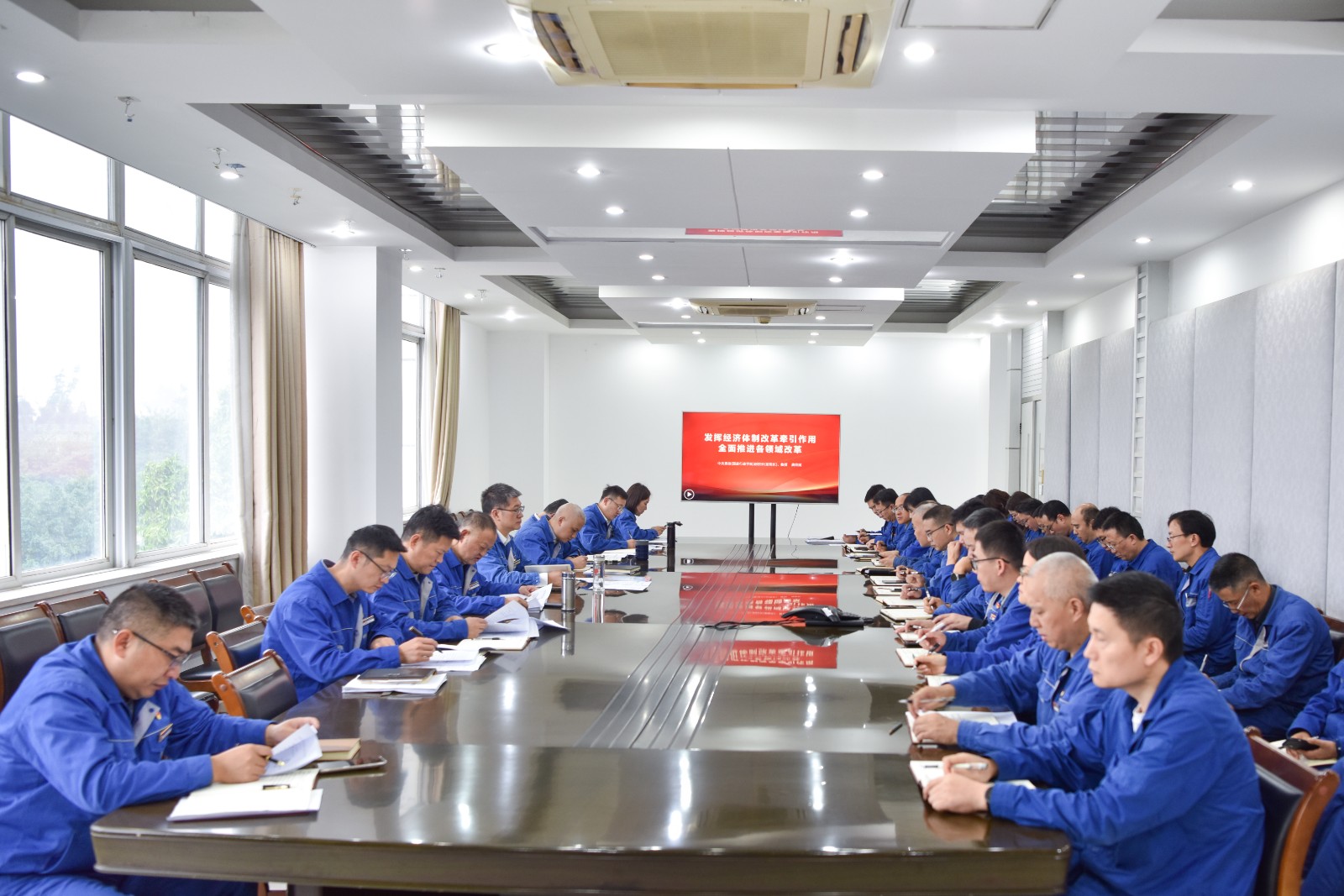 11月8日,川南发电公司党委召开2024年第11次党委理论学习中心组学习(扩大)会,专题学习习近平文化思想及党的二十届三中全会精神。川南发电公司党委书记、董事长刘胜金主持会议,领导班子成员、中层管理人员参加学习。