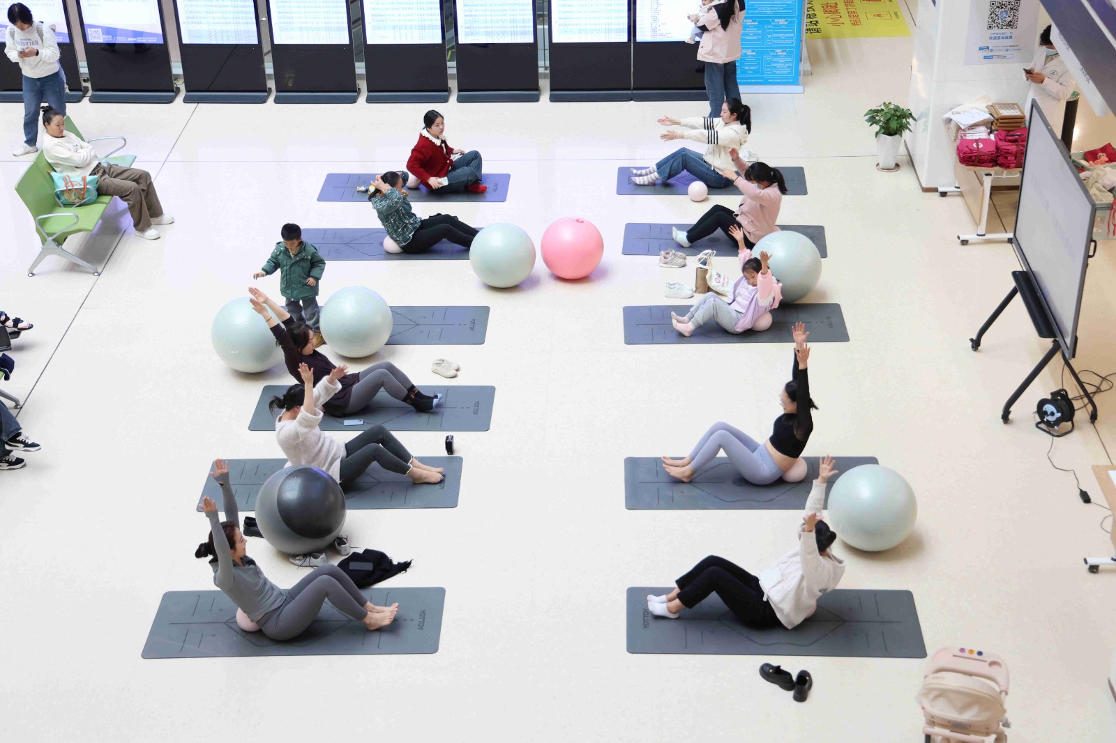 活动最后,妇产科护士彭瑶带领到院就诊的孕产妇、妇女儿童患者进行了现场瑜伽体验,伴随着悠扬舒缓的音乐,大家全身放松,轻缓地伸展身体、缓慢呼吸。期间,彭瑶老师一对一指导每一位女性朋友调节呼吸、用力等,协助完成最佳瑜伽体式,以达到最佳运动效果。