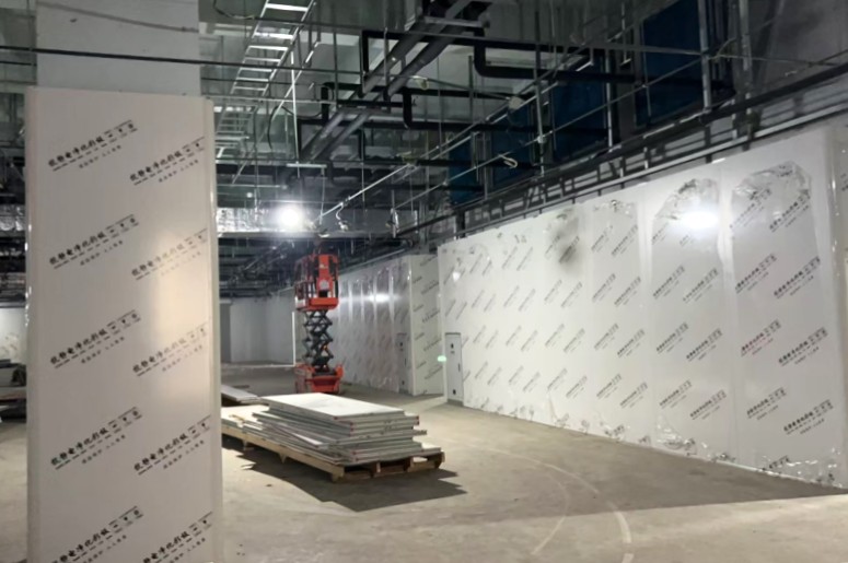 在各楼栋建设现场,机电管道安装、建筑内墙装饰、地面铺设、设备安装调试以及绿化等工作正如火如荼地进行;在外电建设方面,厂区内第一条高压供电线路已按计划完成安装及验收,达到通电条件,为后续施工、设备安装提供更充足的电力保障。