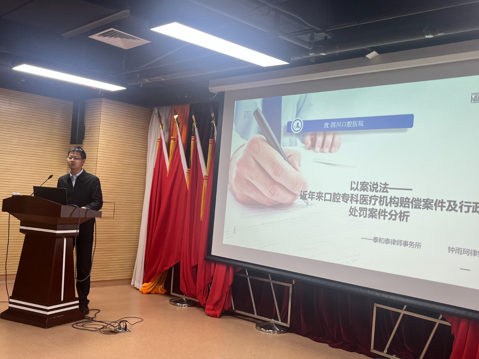 为提高医务人员法律意识和质量意识,进一步规范医疗行为,预防重大医疗过失、医疗事故的发生,全面保障医院医疗质量与安全,11月20日,四川口腔医院特邀四川省律师协会医药卫生法专业委员会委员钟雨珂律师开展“以案说法解决新形势下的医疗纠纷”主题讲座。