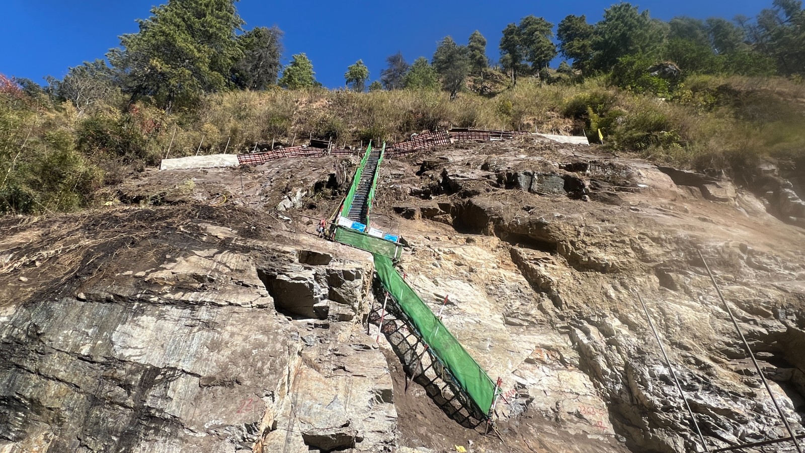 此行的目的地是马相迪河,位于喜马拉雅山脉南麓深处。从首都加德满都出发前往项目的山路狭窄崎岖,地质结构复杂,塌方落石频发。坐在车上,左侧是层峦叠嶂的峡谷,右侧是险象环生的悬崖,踏勘道路仅短短60公里的路程,却换了三辆车,颠簸了十几个小时方才到达。下车后,距离目的地还有很长一段路只能靠步行。一行人弓身曲背,背着行李和干粮,步履沉重地向前迈进,奔走在山川河流中。